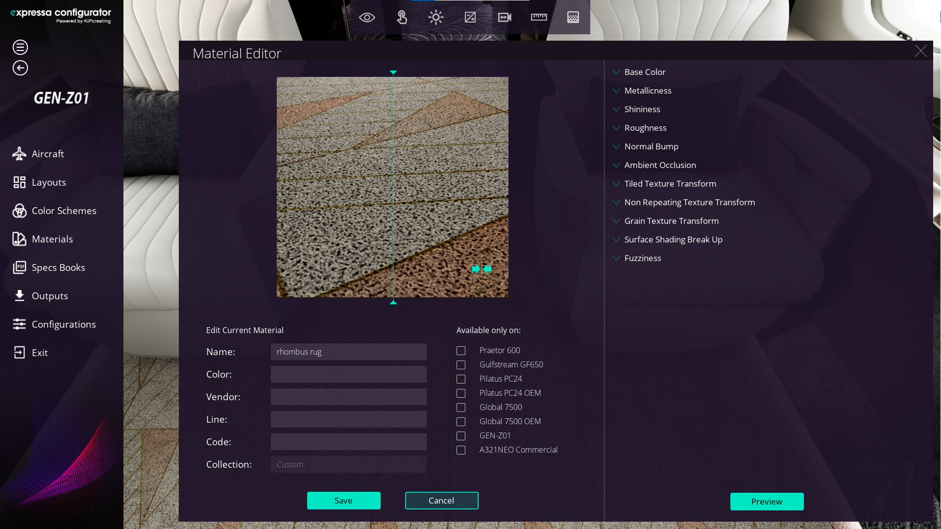 - Upload the maps into the configurator and test how they affect the appearance of your material.